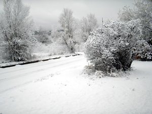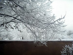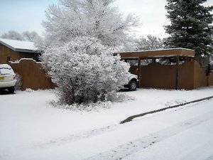 View out the front window (generally I see the Taos Mountain, but its still snowing up there)