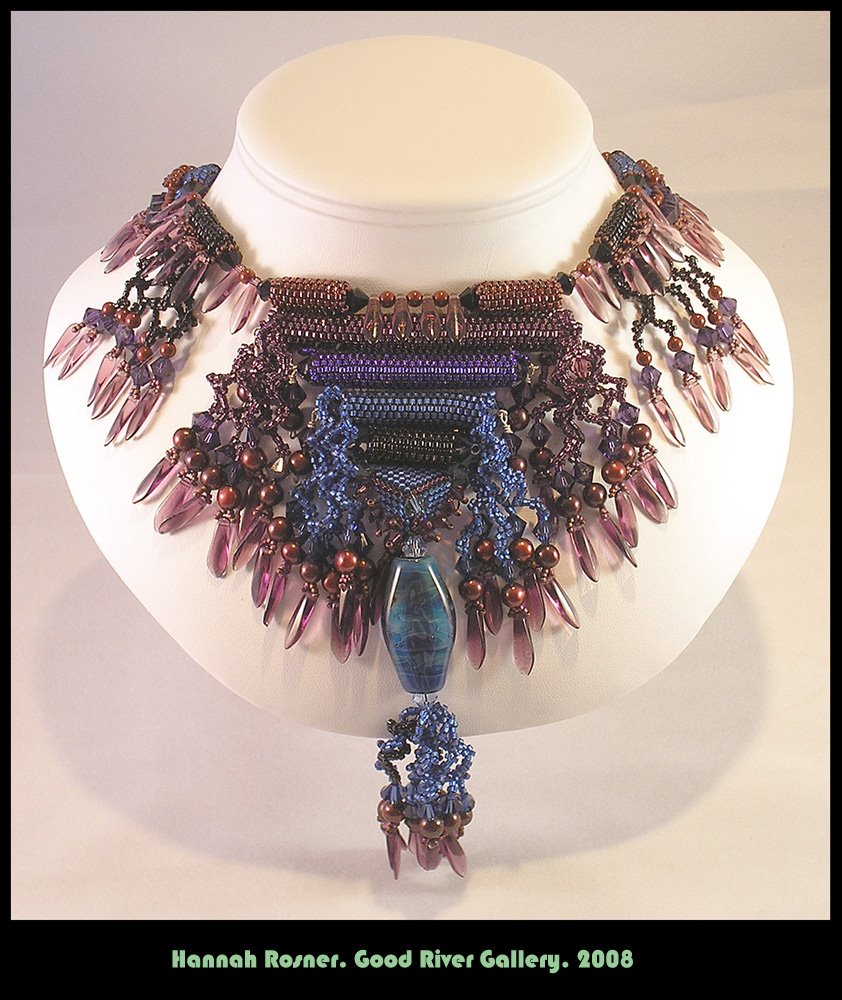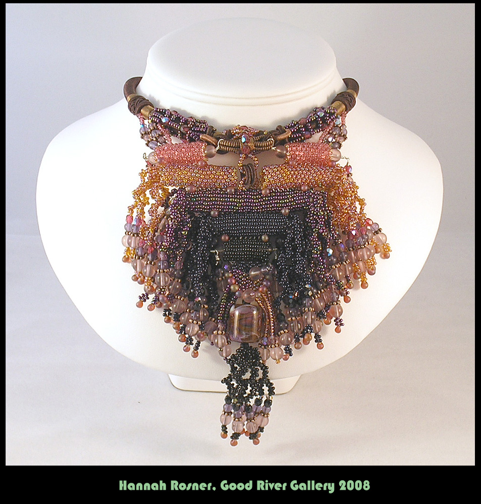 I finally finished the Taos Sunset necklace that I had as “only a pendant” for the class… in August in Columbus! The blue/black/purple delica one is the one I created as the sample, and the red/orange seed bead one is the one I did as a demo in class. They are available on my new 1000Markets shop