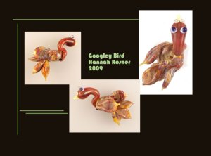 BRAND NEW! Introduction to Sculptural Beads: A Googleybird $30.00 Intermediate Lampworking Project in boro & soft glass Googleybird Tutorial for sculptural lampwork is now available. Over 20 pages with 50+ photographs. Step by step directions on how to approach sculptural lampwork with both boro and soft glass directions. Students need a kiln for this project.…
