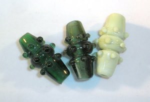 We’re pleased to announce a new set of beads at Good River Gallery! We’ve gone green with 100% recycled glass beads, and we can’t believe it took us this long to think of these. Single color beads, made in a number of different styles. These are available in many colors, either shiny or matte finish, are all made to order, and these “UP!scaled” beads are perfect for steampunk designs.