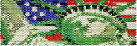 American Flag & Lady Liberty Beaded Bracelet Kit – Intermediate Level Beading Kit – Peyote Stitch Bracelet. All beads and instruction included. You’ll need to provide the clasp, although the instruction packet explains clasping techniques. Available NEW at Beadstogo.com from Caravan Beads Chicago.