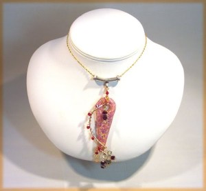 And a few finished design ideas, too!I’ve added two new shapes to my tribal beads sections: diamonds and triangles! In addition, check out the design ideas for how to use them. To the left, the original shape being worked up in bead embroidery (unfinished, obviously). Below, used in wirewrapping and chainmaille.