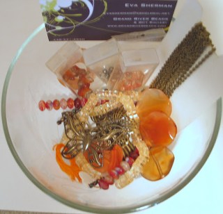This morning I poured Eva’s Bead Soup into a bowl and started adding stuff from my stash. Here’s what I’ve got: