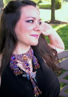In the photos, Danielle is wearing two bead embroidered pieces I did for challenges. I’ll talk about the one below later this month. The one to the left was done for the online Battle of the Beadsmiths 2012.