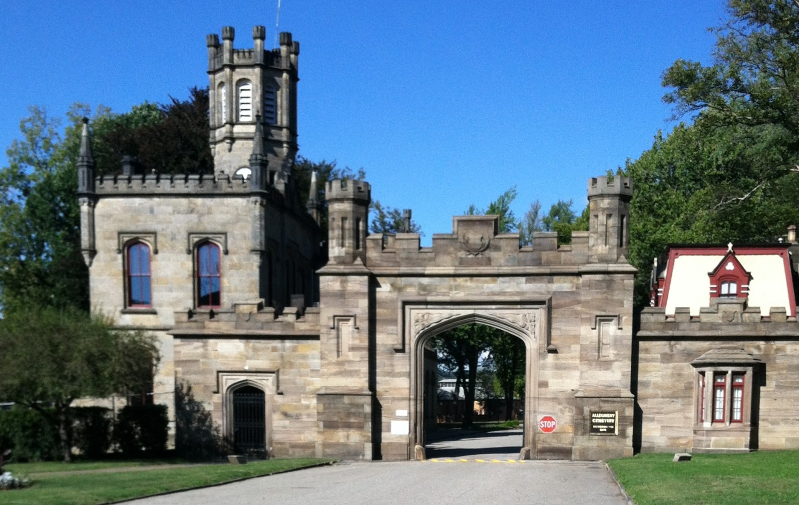 Here’s the front gate of the Cemetery, as seen from Butler Street. Lawrenceville, the area of Pittsburgh that the bead store and this gate lie in, are really up and coming. Its full of great restaurants (shoutout to Haiku and the Round Corner Cantina). By the way, all of these photos were taken by Barb. All I did was crop and straighten them.