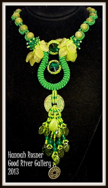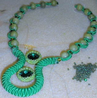 So… I have this soutache thing going on now. You know, that thing I taught at Bead & Button? Folks seem to dig it just now. Anyhow, I had an awful lot of green soutache left over after B&B and the Baltimore Best Bead Show. I haven’t really been HOARDING it since I just bought it about a month ago. But… it was just sitting there. Eyeballing me. Sorta saying “neener neener.” You know how soutache does that, right?