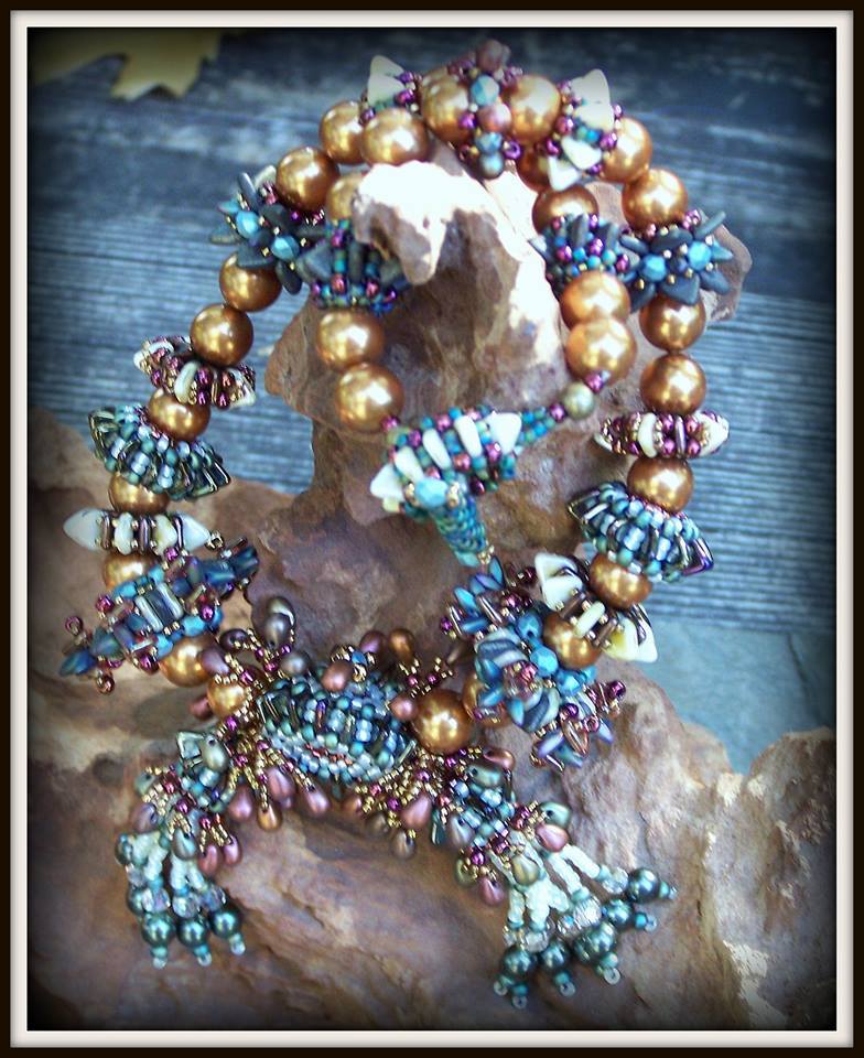 Catalog Please select your category from the list below. BEADS •FOCAL •FLOWERS •OSU – BUCKEYE SPIRIT •RECYCLED GLASS [caption id=u0022u0022 align=u0022alignrightu0022 width=u0022115u0022 caption=u0022Image via CrunchBaseu0022][/caption] • EARRINGS BRACELETS •FANCY CUFFS •SEED BEADED •LAMPWORK KITS u0026amp; TUTORIALS •LAMPWORK TUTORIALS •BEGINNING/INTERMEDIATE BEADWEAVING u0026amp; WIREWORKING •PEYOTE STITCH AND BEADWOVEN CUFFS •ADVANCED BEADWOVEN KITS u0026amp; TUTORIALS • NECKLACES PENDANTS • SEED BEADED • GLASS FLOWERS • PURSES • SCULPTURAL WORK • WHOLESALE INFO FEATURED: Northern Lights (photo at top of page) Created as both a challenge from Aunties beads u0026amp; also as the June Etsy Beadweaver’s Challenge. Clive Henderson from Auntie’s Beads contacted me and asked me to make a piece with some of the beads from his site. Shiny pretty things and a deadline from both he and also Bead u0026amp; Button? I’m so on it! This bead embroidered pendant has my signature “too much fringe.” The central three pieces are vintage buttons I’ve been hoarding, but all the fringe beads are stuff I got from Auntie’s Beads and from a challenge I did for Caravan Beads Chicago. Its more vibrantly purple in person than on my screen.